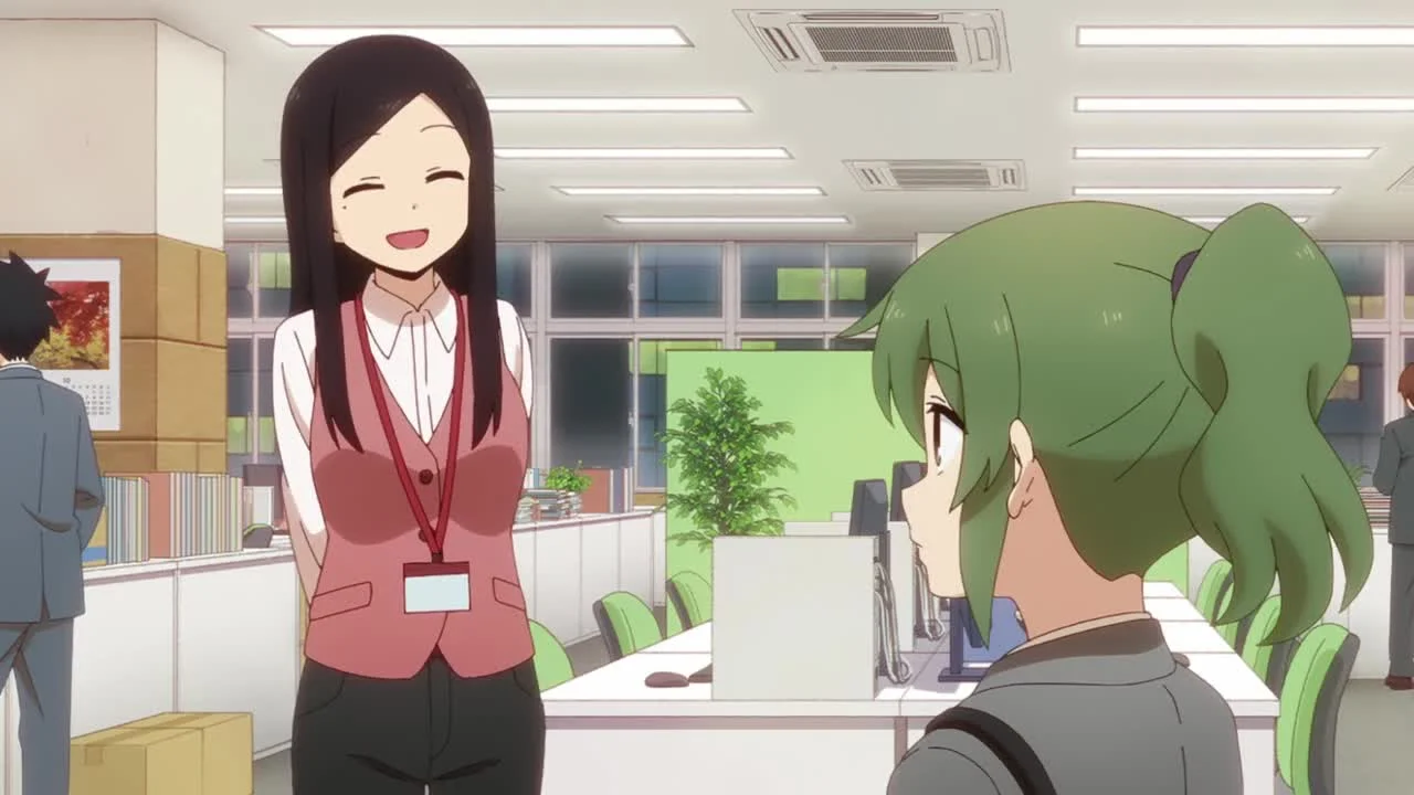 Главная героиня истории — миниатюрная офисная служащая по имени Футаба. Несмотря на хрупкость и эмоциональную нестабильность, у неё есть на кого опереться — её старший коллега Такеда. Он часто вмешивается в её дела, похлопывает по голове и не упускает случая поддразнить, что вызывает у Футабы раздражение. Она безуспешно пытается держать дистанцию, ведь Такеда всегда рядом: помогает по работе, сопровождает в поездках в бар и неизменно оказывается рядом в нужный момент.
